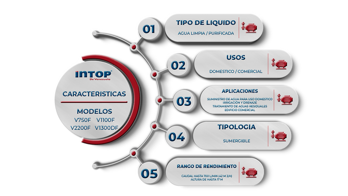 •Las bombas de la serie V son adecuadas para descargar agua sucia en aplicaciones civiles y domésticas, así como para bombear agua sucia que contenga sólidos en suspensión de hasta Ø 5 mm.